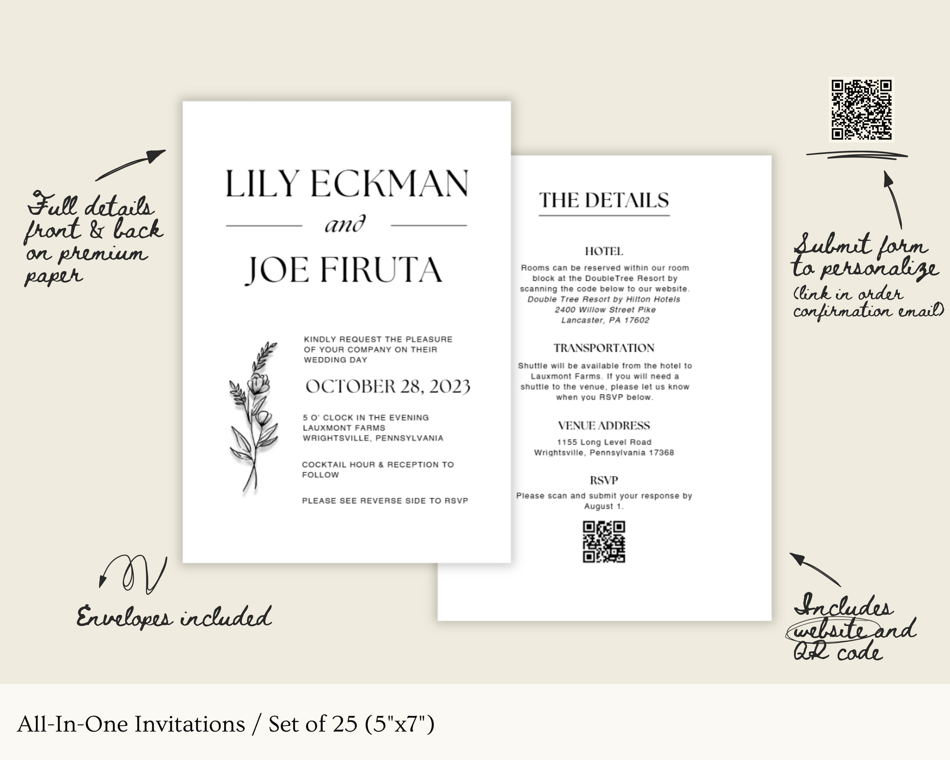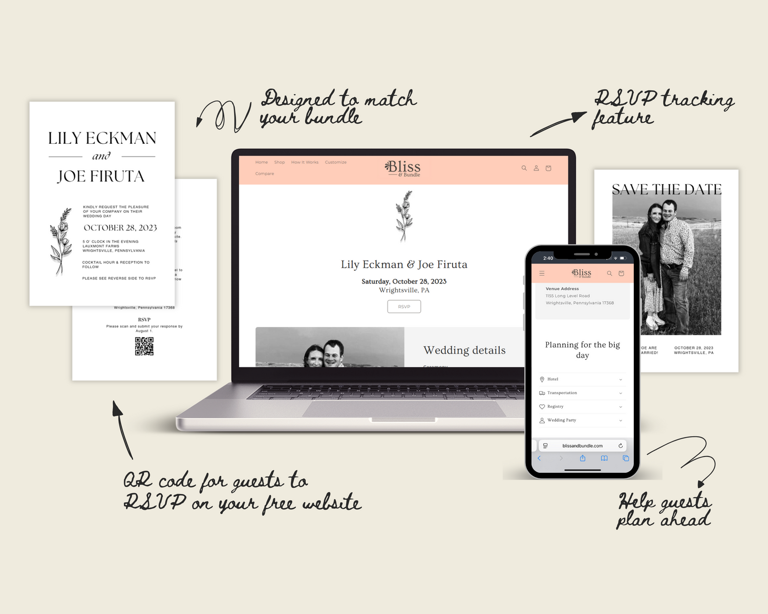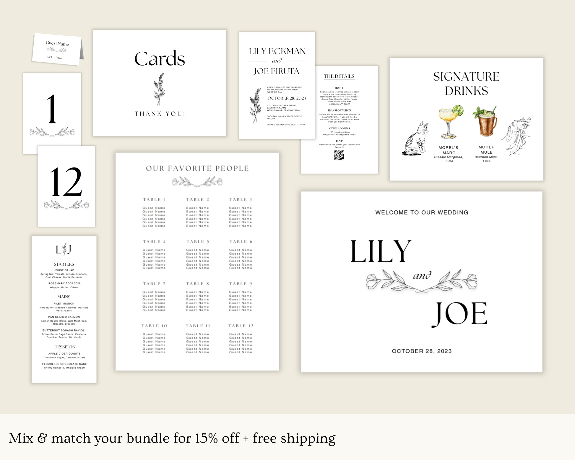 Receive a 15% discount by adding at least 5 items to your cart seamlessly using our bundling tool. Mix & match your Save The Dates, All-In-One Invitations, signage, menus and more.