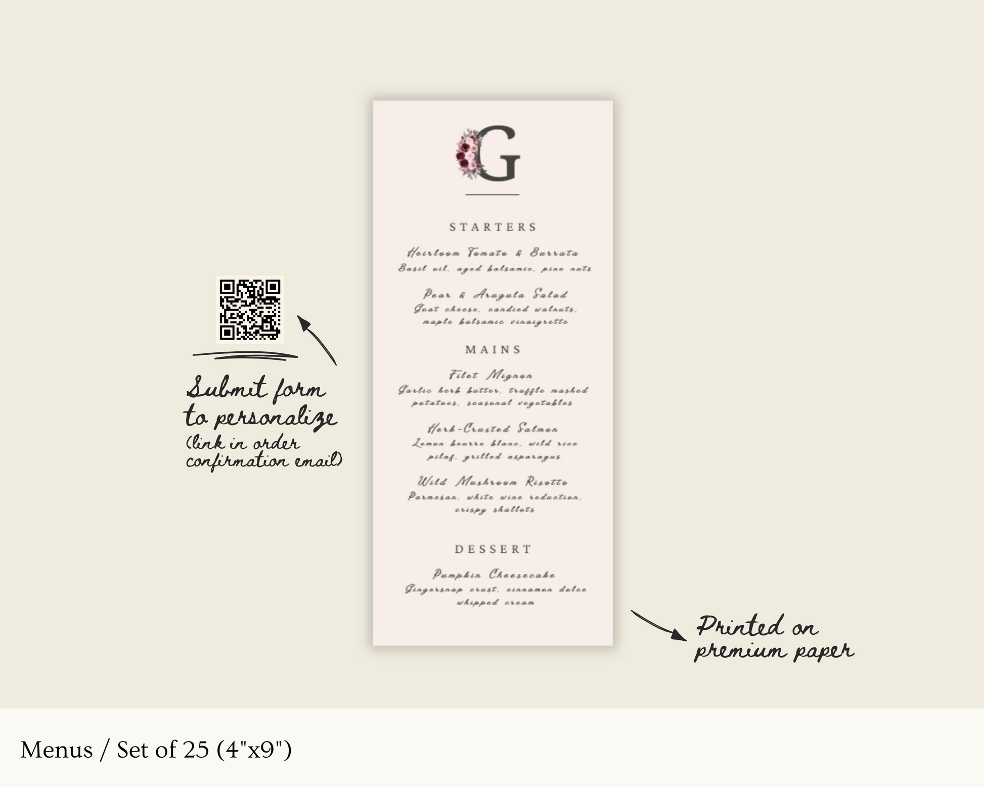 Menus / Set of 25 (4"x9")