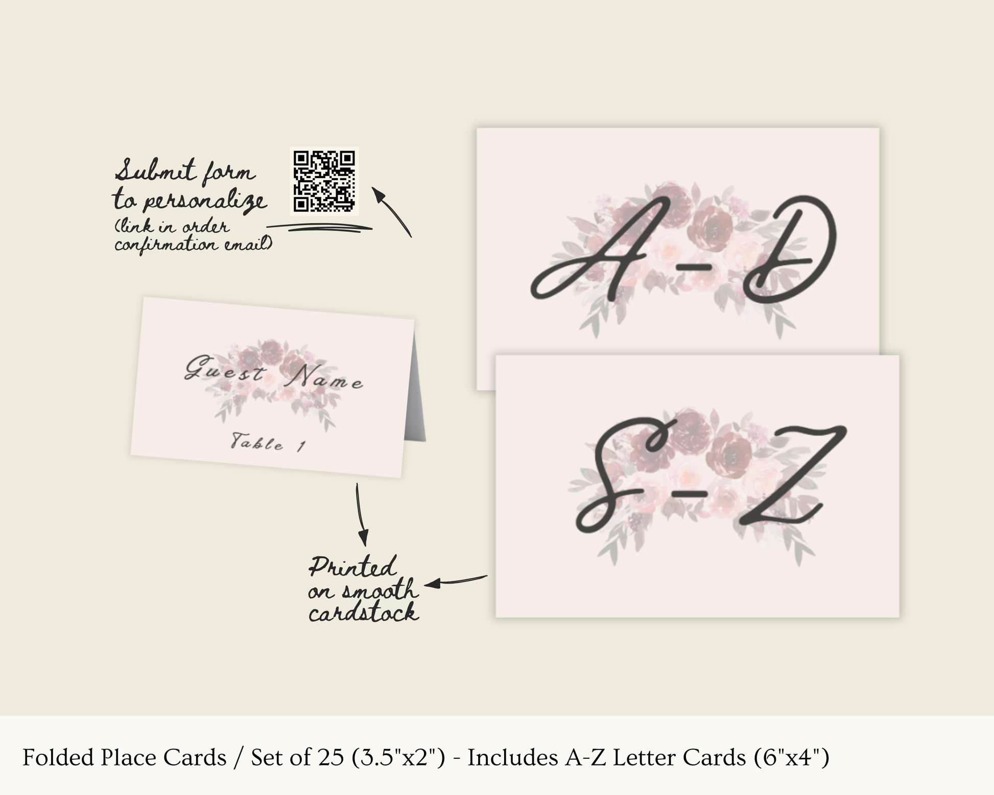 Folded Place Cards / Set of 25 (3.5"x2")
