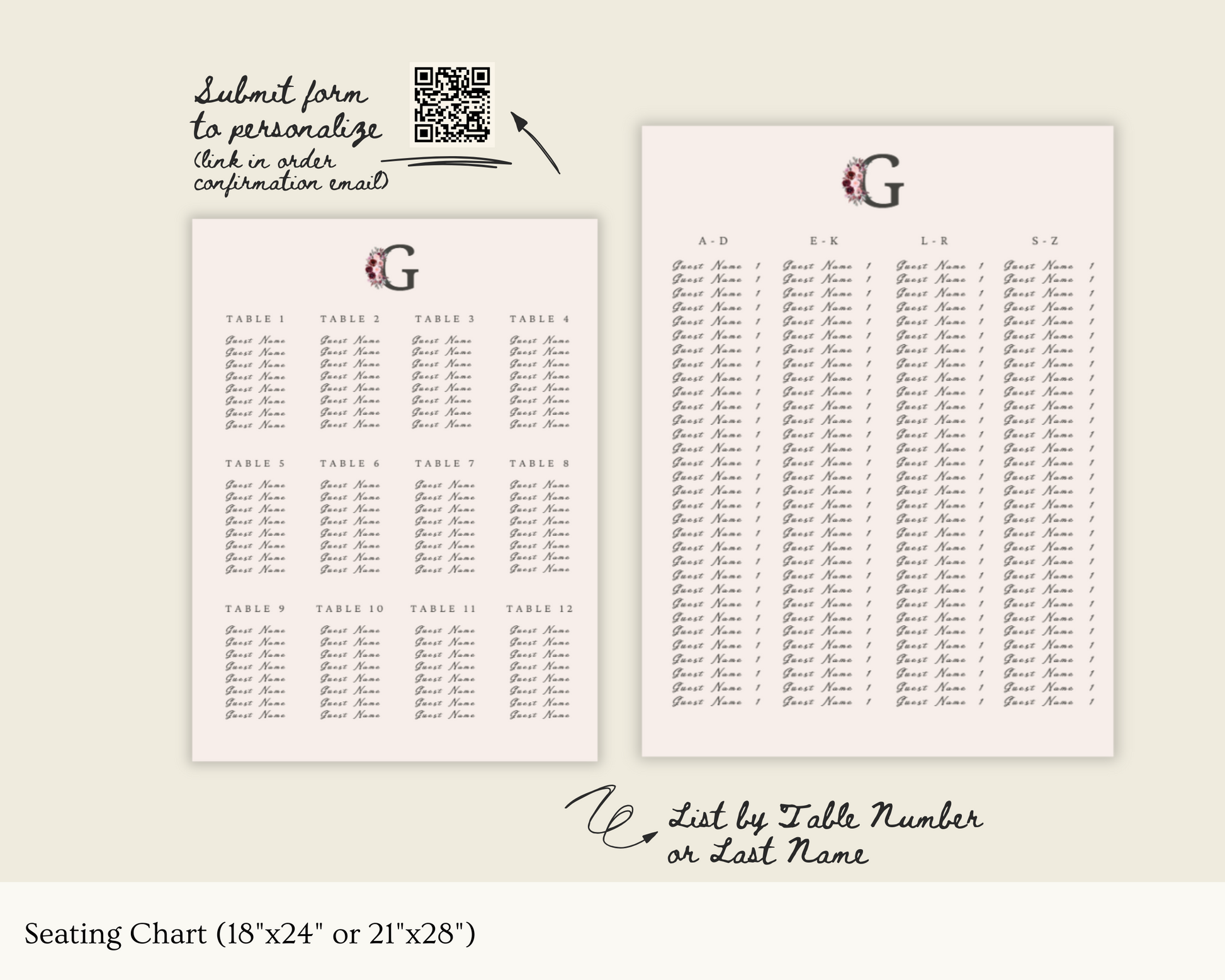 Seating Chart / Paper-Board (21"x28")