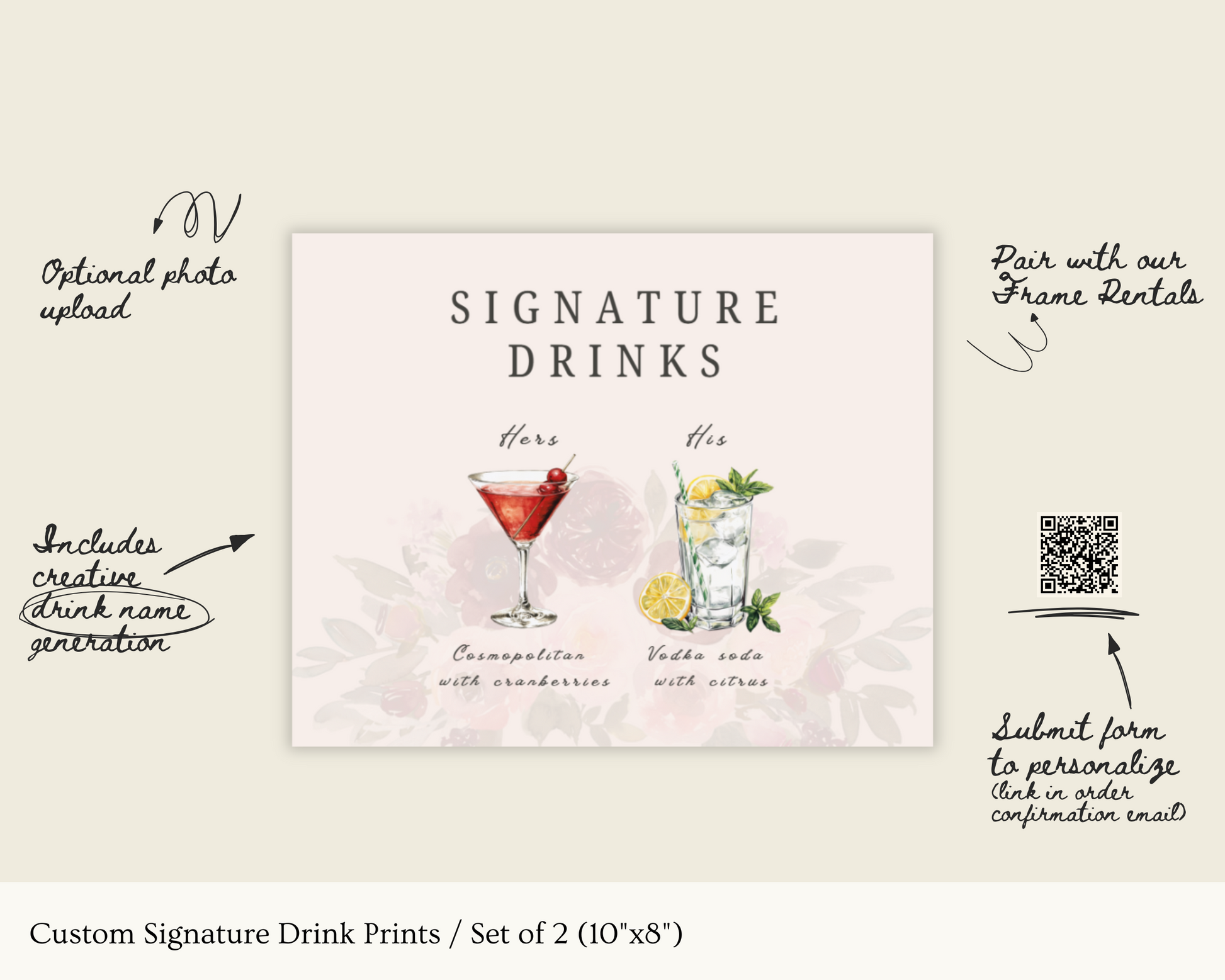 Custom Signature Drink Prints / Set of 2 (10"x8")